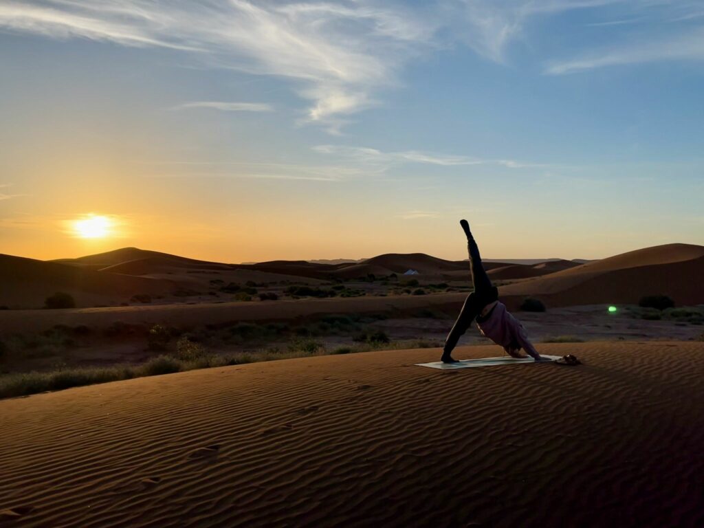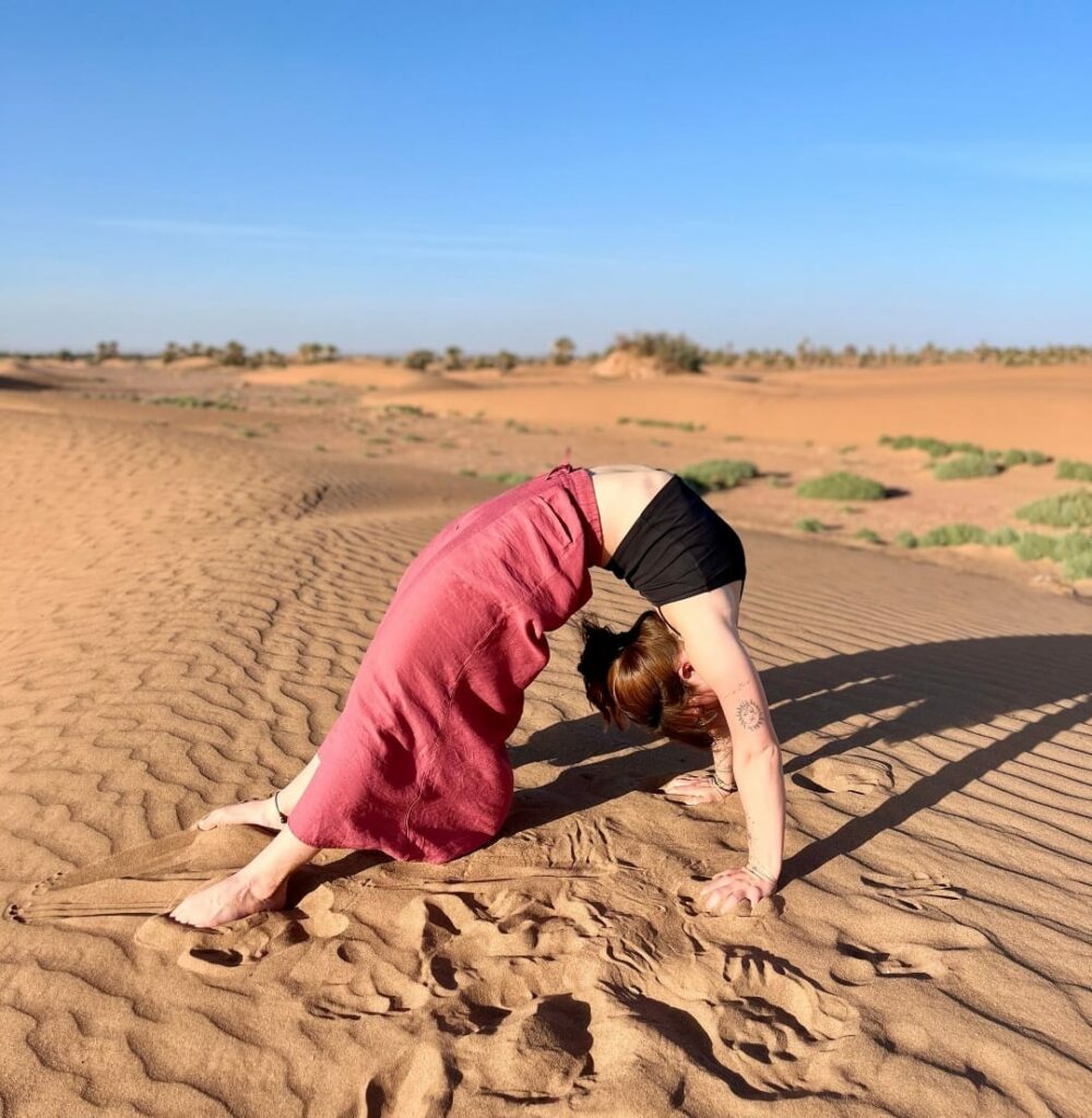 C’est en Inde, en 2018, que j’ai découvert le yoga, une rencontre qui a profondément transformé ma relation à moi-même, à mon corps et à mon énergie. Depuis, je me suis formée intensément, cumulant aujourd’hui plus de 400 heures de formation, ainsi que des centaines d’heures d’enseignement. Le yoga est devenu un pilier de mon équilibre, un outil de conscience, d’alignement et d’incarnation. Les moments sur mon tapis me permettent de faire le point sur l’agitation de mon mental, c’est un moment pour déposer les barrières et simplement laisser le corps s’exprimer, l’énergie circuler.